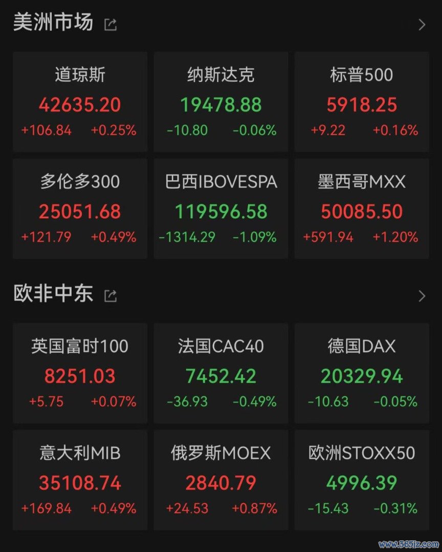 美股三大指数震荡。截至收盘,道琼斯工业指数上涨0.25%,纳斯达克指数下跌0.06%,标普500指数上涨0.16%。其中,纳斯达克指数连续两个交易日下跌。